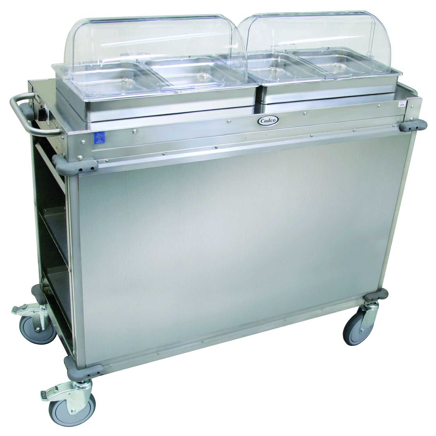 2 stainless pan holders attach securely to cart